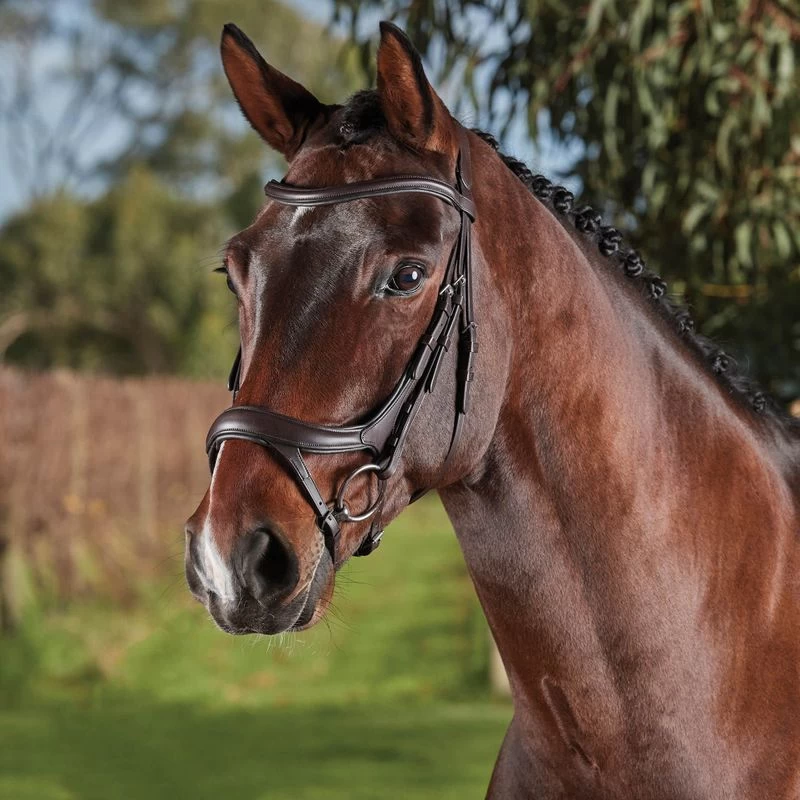 This bridle is made from high quality European leather and features an anatomical headpiece with super soft padding throughout and is wider shaped between the horses ears to distribute pressure evenly and comfortably. The curved nose piece is shaped to bypasses all the sensitive main facial nerves and offers ultimate comfort and protection.