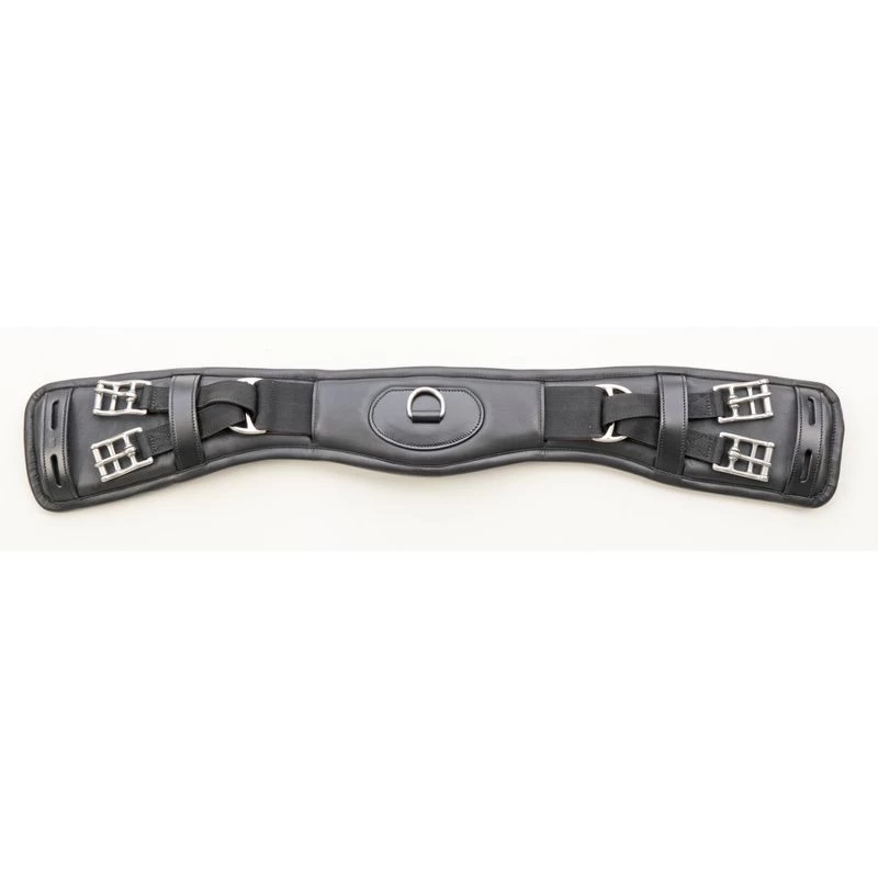 The Equine Innovations Ultra Padded Dressage Girth is the best you can do for your dressage horse. This short dressage girth is made of soft, high quality leather. It is padded on every surface that touches the horse. The Y girthing system distributes pressure evenly, and the girth extends far enough past the buckles that there is no chance of pinching at the buckle points.