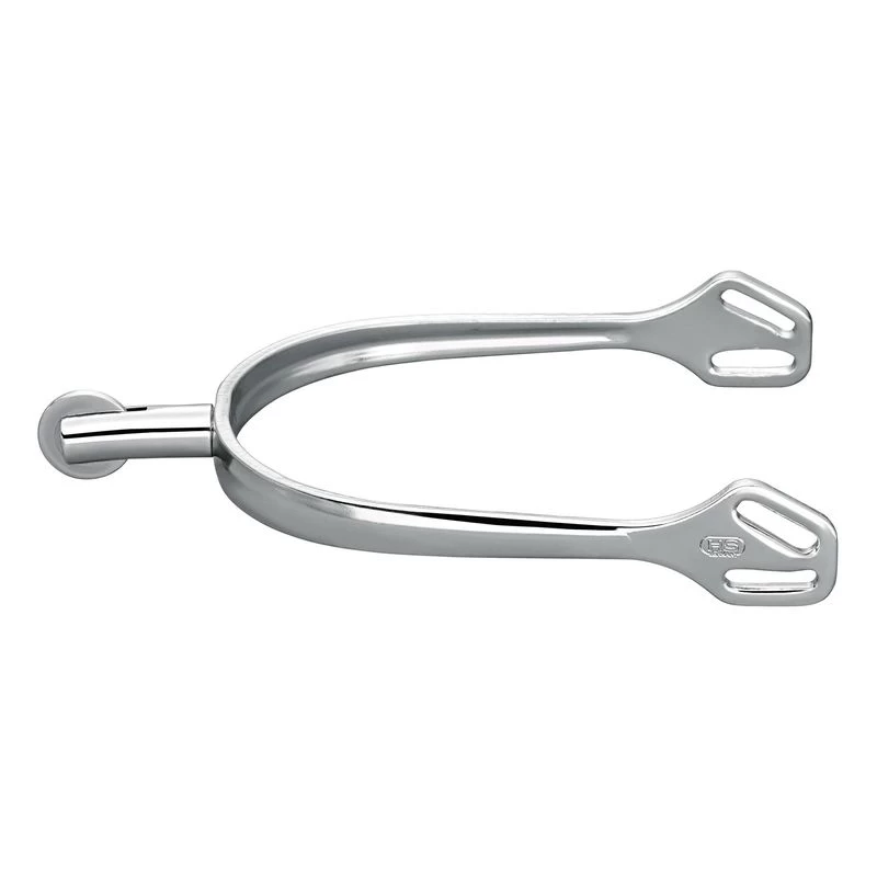 This spur features a 30mm flat end neck with a small smooth rowel. It has unisex sizing that will fit both men and women.