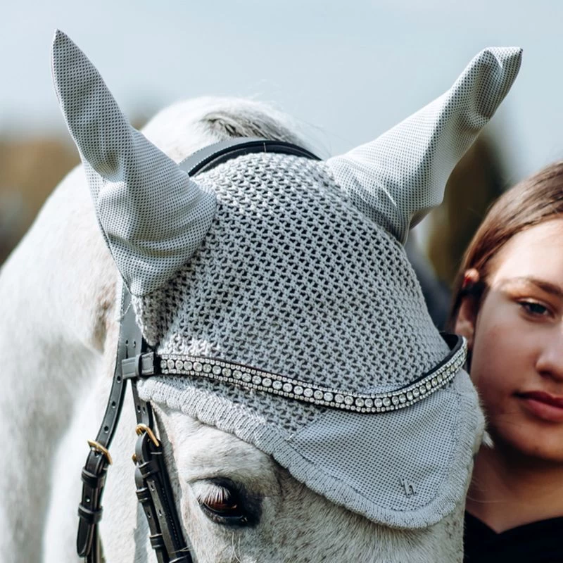 This cooling ear net keeps your horse comfortable in the summer and insects away. Breathable mesh material on ears and center front ensures ventilation while being soft and comfortable. The colorful piping along the trim brightens your tack, and the small logo gives a sporty look.
