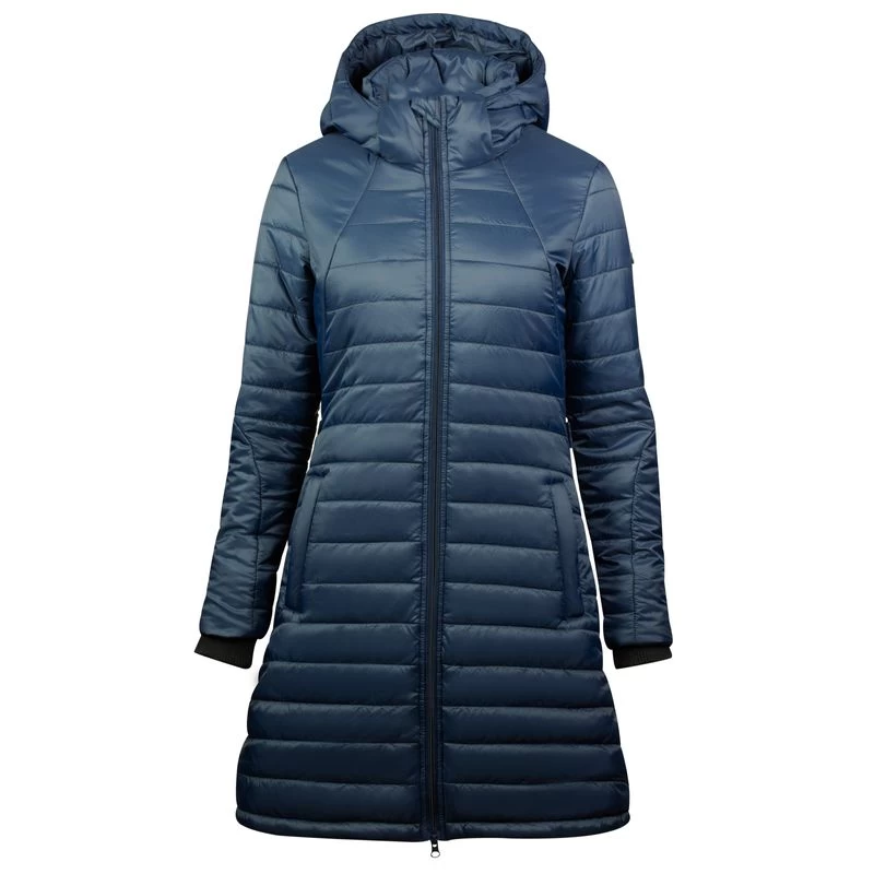 The long skirt opens in the back and magnetic snaps keep drafts away while protecting your saddle from scratchy buckles or buttons. Adjustable elastic straps on the inside let you customize the fit. A tapered waist adds a feminine fit to this versatile, long jacket. 3000mm/3000mvp, no taped seams.