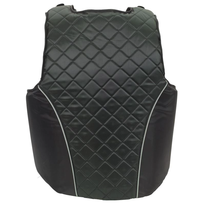 Features an easy to use and secure YKK front zipper, adjustable hook and loop shoulder straps, dual hook and loop adjustable side panels, and reflective piping front and back for safety even in low-light conditions. For maximum performance and protection, this body protector must fit snugly, be free from rips or tears, and remain securely in position when adjusted for proper fit.